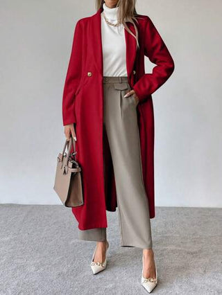 Clasi قطعة واحدة معطف أنيق للنساء بأكمام طويلة ذو لون أحادي الصدر مزدوج الأبرة ، للخريف والشتاء