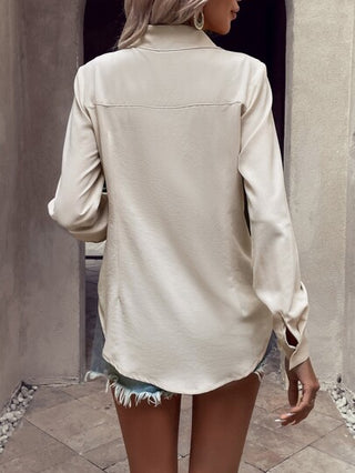 Clasi قميص بحواف منحنية من النسيج الصلب باغلاق أزرار، ملابس رمضان
