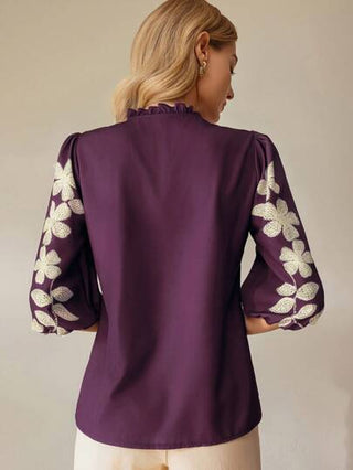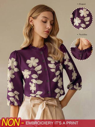 Clasi قميص كاجوال أحادي الصدر بأكمام فوانيس مزخرف بطبعات زهرية للنساء