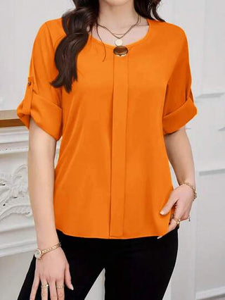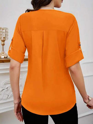 Clasi قميص نسائي أحادي اللون بأكمام قابلة للطي للاستخدام اليومي والمكتبي
