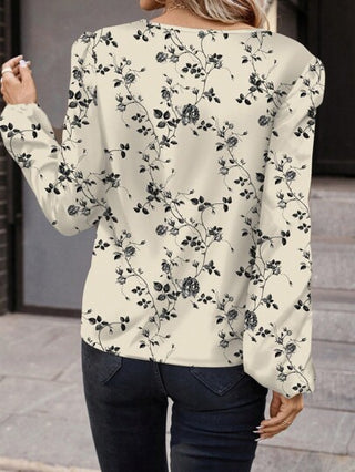 Clasi قميص نسائي بأكمام طويلة وياقة على شكل v مطبوع بزهور بفضفاض مناسب للخريف