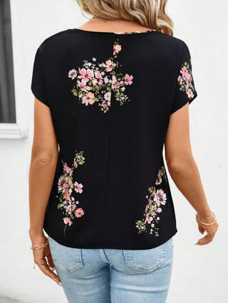 Clasi قميص نسائي بأكمام قصيرة ولون سادة وطبعة زهور
