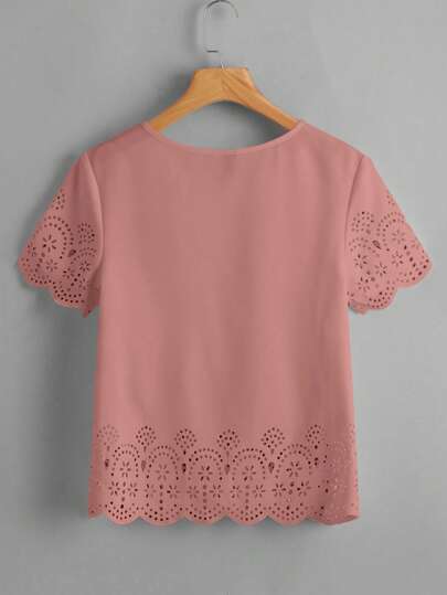 Clasi لباس علوي قطع بالليزر مقلم شكل اقواس موحدة اللون