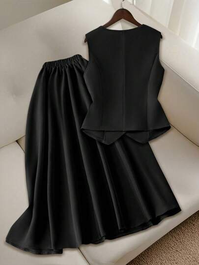 Clasi مجموعة فستان أنيق طويل من قطعتين مع ملابس علوية خزان بياقة على شكل حرف V وخصر ضيق للسيدات، وفساتين طويلة من النمط A-line بلون أحادي، طراز عتيق مناسب للعطلات والتنقل