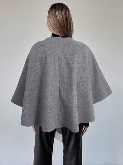 Clasi معطف أنيق غير متناظر بتصميم علوي منسدل للنساء، لون أحادي، خريف/شتاء