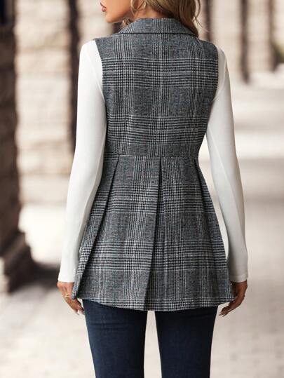 Clasi معطف صدري طباعة مربع النقش تجاعيد مطوية