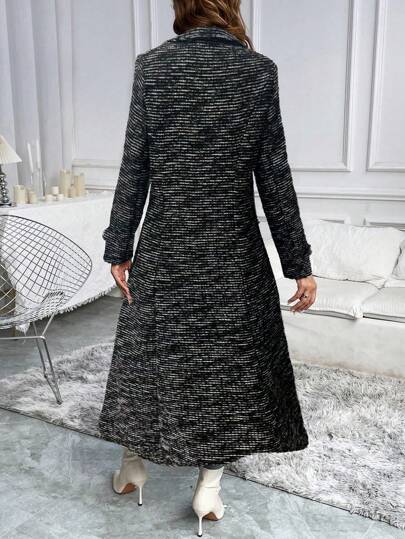 Clasi معطف طويل ذو أزرار مزدوجة، كاجوال للخريف/الشتاء