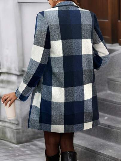 Clasi معطف كلاسيكي مربع النسيج للنساء مع طوق، زخرفة أزرار ، دافئ وعملي ، مناسب للخريف / الشتاء / الربيع