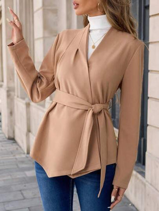 Clasi معطف للمكتب طويل الأكمام أنيق باللون الأحادي لموسم الخريف للسيدات