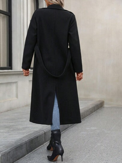 Clasi معطف محبك طويل الأكمام طويل من خليط مافحيمة مقلنس الياقة إطالة عادي أنيق للنساء