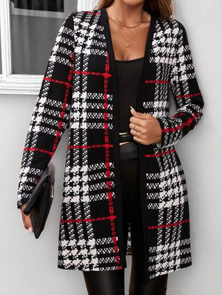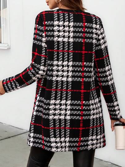 Clasi معطف نسائي أنيق بطبعة المربعات العتيقة والألوان المتداخلة، قصة عادية مناسبة بفتحته الأمامية