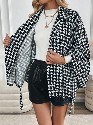 Clasi معطف نسائي بأكمام خفيفة من الجاكيت ذات ياقة عالية واكمام الوطواط على شكل بونشو بطبعة القماش اسكتلندي مبطن بالحبل، مناسب للربيع والخريف