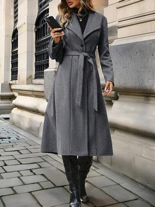 Clasi معطف نسائي بياقة انقلابية وأكمام طويلة ولون أحادي الحزام