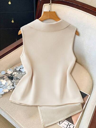 Clasi ملابس علوية كاجوال بدون أكمام ياقة كشكشة ذات لون أحادي للنساء