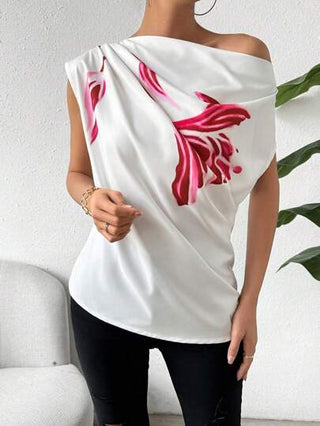 Clasi ملابس علوية نسائي حمالة واحدة ذو طباعة على الكتف المائل