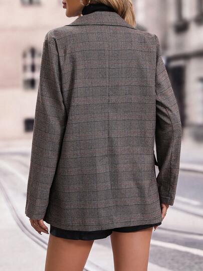 Clasi جاكيت طباعة مربع النقش أزرار مزدوجة