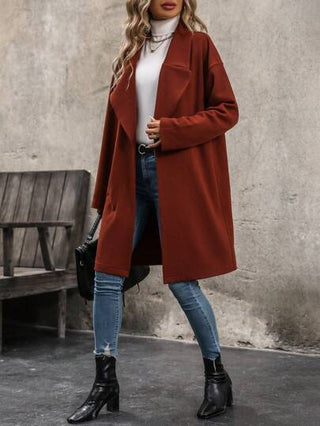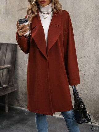 Clasi معطف بياقة مطوي مسنن منخفض الاكتاف مفتوح امامي