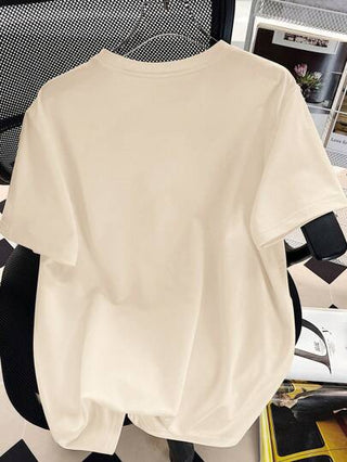 Comfortcana بلوزة قطنية بأكمام قصيرة وياقة مستديرة مع طباعة الكرز للمقاسات الكبيرة