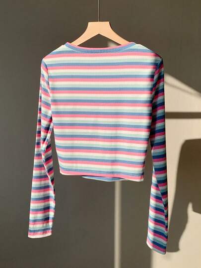Comfortcana بلوزة نسائية قطن مضلعة بأكمام طويلة وياقة عادية ضيقة الجسم