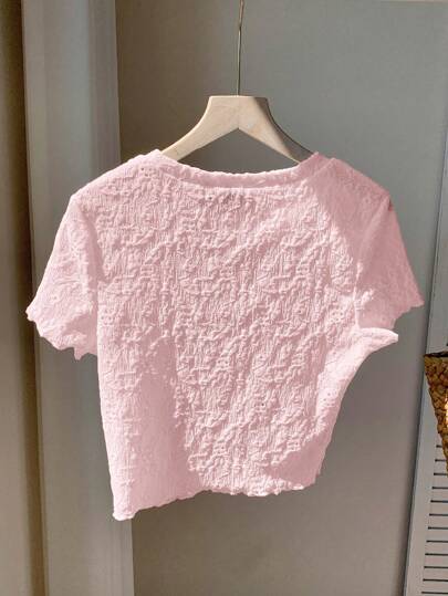Comfortcana تيشيرت قصير الأكمام بياقة مستديرة، أساسي، منسوج بطريقة جاكار، وردي، صيفي