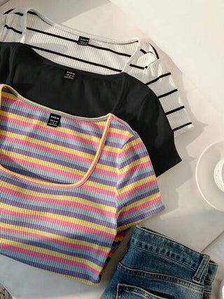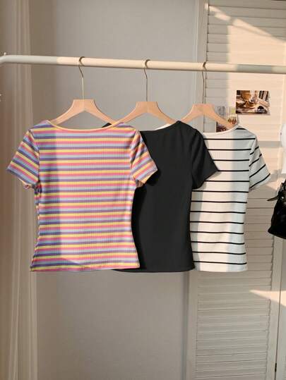 Comfortcana تي شيرت تي تراكب ضيق للنساء 3 ألوان ، متعدد الاستخدامات وأنيق ، مناسب للصيف