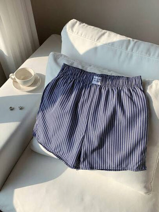 Comfortcana شورت صيفي فضفاض بتفاصيل رقعة مطبوعة بنقشة الشريط