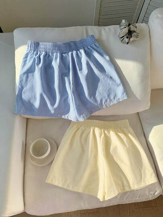 Comfortcana شورت صيفي مخطط مع شريط مجعدة