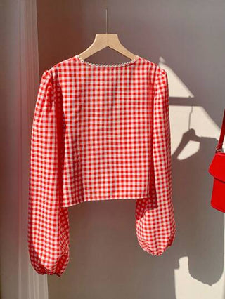 Comfortcana قميص نسائي كاجوال فضفاض بياقة وأكمام طويلة مخطط مع ربطة أمامية