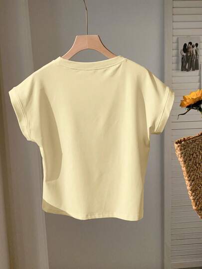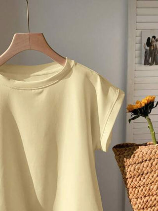 Comfortcana تي شيرت نسائي أكمام قصيرة رقبة دائرية، أحادي اللون، بسيط وأنيق، مناسب للصيف