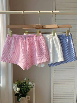 Comfortcana 3 قطعة/مجموعة سراويل قصيرة عادية للنساء باللون الوردي والأزرق والأبيض الأبيض الأبيض الأحادي اللون