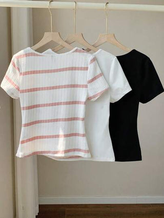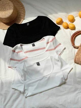 Comfortcana 3 قطع/مجموعة قميص كنزة نساء قصيرة الأكمام مقطوعة الأساسية، باللونين الأبيض والأسود
