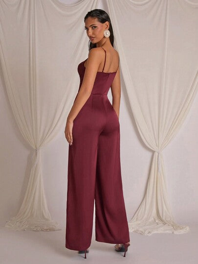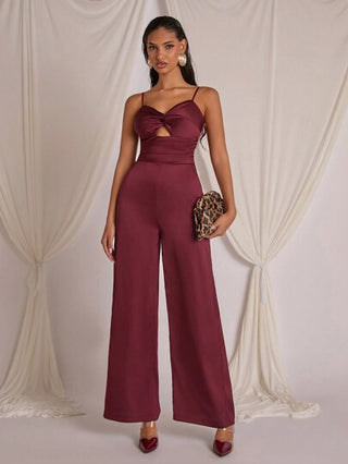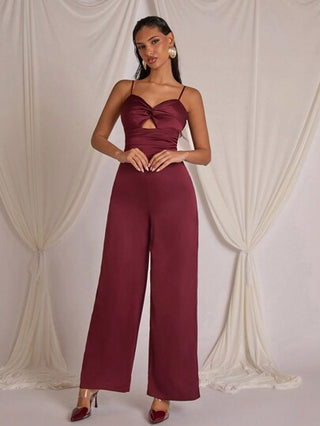COSMINA جمبسوت نسائية بتصميم فراغات وطيات ملتفة باللون الأحمر الكرزي، للفالنتاين، رأس السنة الجديدة، خريف/شتاء