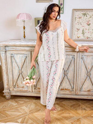 CottageSlumber طقم ملابس نوم بتصميم حريري مطبوع بأشكال فقاعات الهواء مع تطريز من الأقمشة المخملية للأحجام الكبيرة