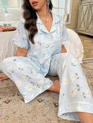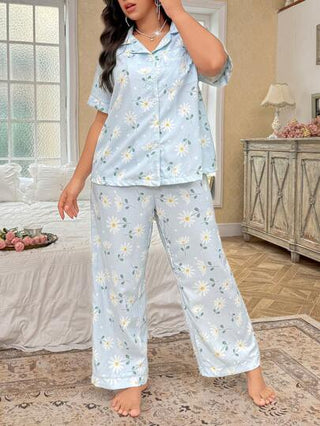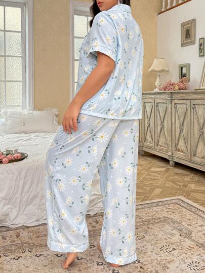 CottageSlumber مجموعة بيجام كاجوال مطبوع عليها الزهور البرية للنساء كبيرات الحجم، رومانسية وبسيطة