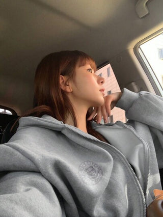 DAZY بلوزة رياضية مزودة بسحاب وقبعة، لون سادة ذات طراز مطرز للنساء