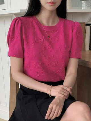 DAZY بلوزة كاجوال ناعمة للنساء، بياقة مستديرة و أكمام قصيرة، تي شيرت صيفي