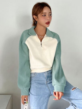 DAZY بلوزة لها سوستة نصف مزيلة بأكمام راجلان بلون متدرج ،ملابس علوية بأكمام طويلة