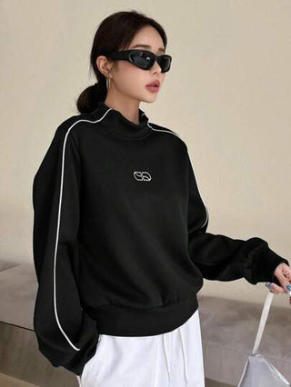 DAZY بلوزة نسائية بياقة عمودية وطباعة حرفية ومزخرفة على الحافة، أكمام طويلة
