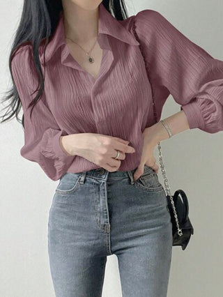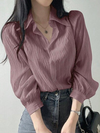 DAZY بلوزة نسائية بياقة مطوية ولون سادة فضفاضة، باللون الأرجواني، مناسبة للربيع/الصيف/الخريف