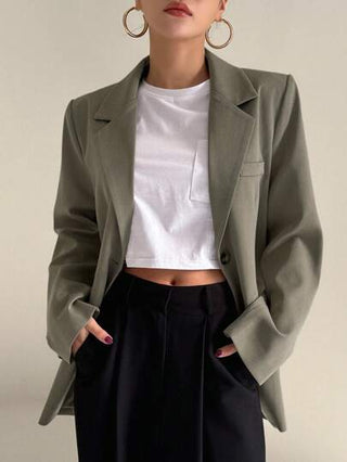 DAZY بليزر فضفاض ذو جيوب واسع الحزام أحادي اللون