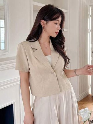 DAZY بليزر كاجوال قصير الأكمام بياقة مشرحة ولون أحادي للنساء
