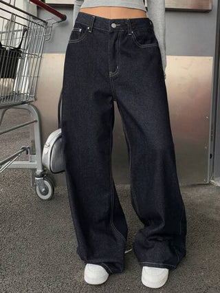 DAZY بنطال جينز أرجل مستقيمة بلون أحادي عصري