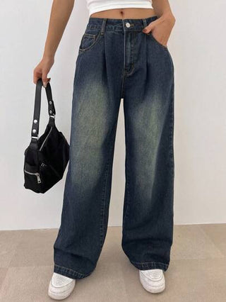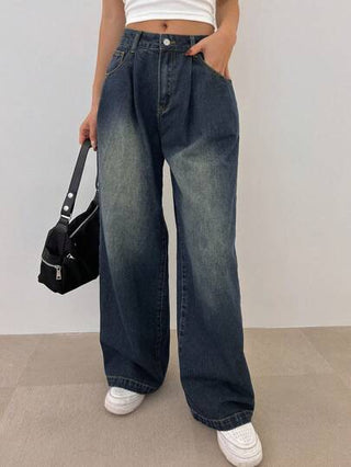 DAZY بنطال جينز ساقه واسعة بجيوب مائلة ، بنطال جينز فضفاض