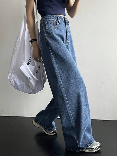 DAZY بنطلون جينز يومي بسيط موحد اللون للنساء
