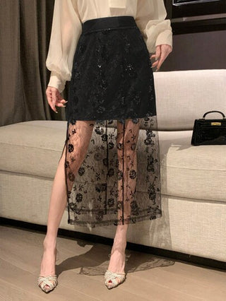 DAZY تنورة جانبية مشقوقة للنساء بتفاصيل دانتيل مضيئة لربيع/الصيف
