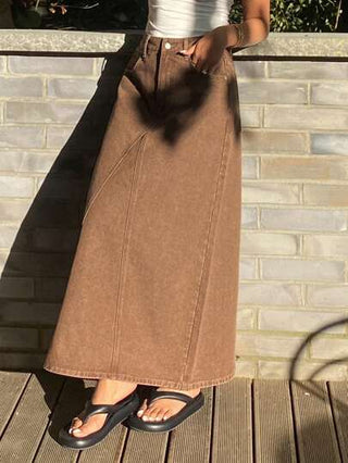 DAZY تنورة جينز أ بخطوط مهترئة وحافة منسلخة مع جيوب، طراز قديم للنساء