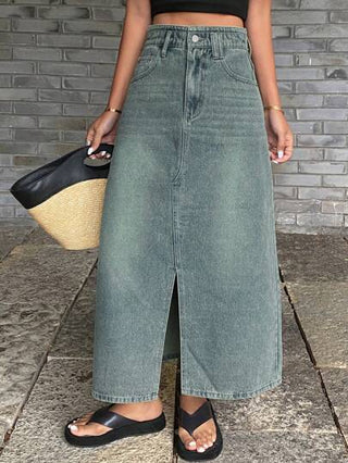 DAZY تنورة جينز باللمسة الغربية مغسولة بخط A، للنساء، صيفي