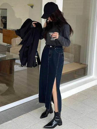 DAZY تنورة جينز طويلة أنيقة للسيدات بشق جانبي