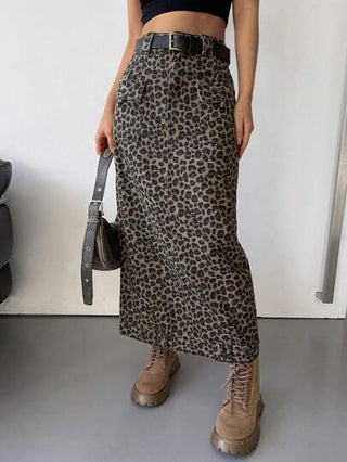 DAZY تنورة جينز طويلة بجيوب كارجو مطبوعة بنمر للنساء