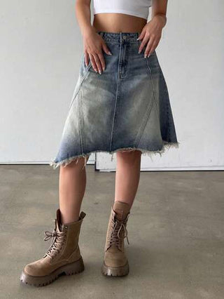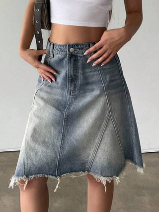DAZY تنورة جينز قصيرة كاجوال مع حاشية متشظية غير متماثلة للنساء